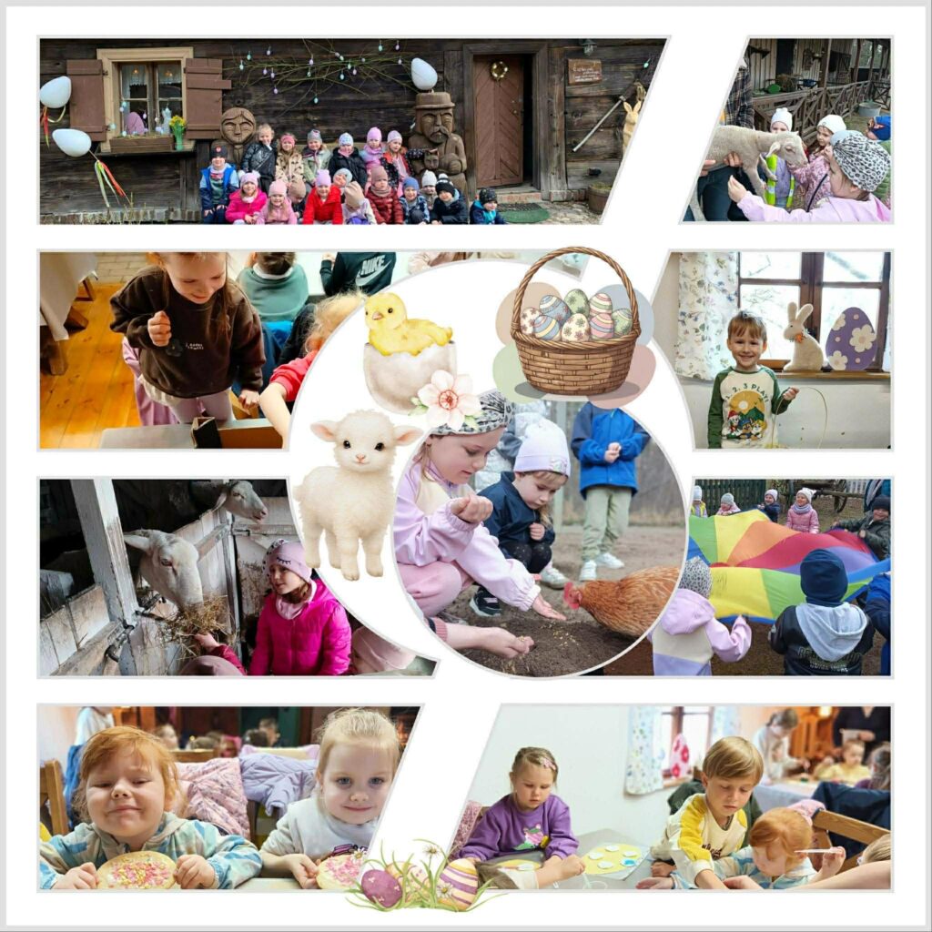 Dnia 25.03.2026r. grupa Kangurki i Motylki wybrała się na wycieczkę świąteczną o tematyce wielkanocnej do Czerniejewa. W programie wyjazdu znalazło się wiele ciekawych atrakcji. Dzieci miały okazję zdobić mazurki, siać rzeżuchę oraz brać udział w ciekawych eksperymentach z jajkiem. Nie zabrakło także zabaw na świeżym powietrzu, w tym poszukiwania jajeczek ukrytych przez zajączka, co sprawiło przedszkolakom wiele radości. Podczas wycieczki dzieci karmiły również zwierzęta, co było dla nich wyjątkowym doświadczeniem. Na zakończenie wszyscy uczestnicy wzięli udział we wspólnym poczęstunku. Wyjazd był pełen radości, zabawy oraz wartościowych doświadczeń związanych z tradycjami wielkanocnymi.